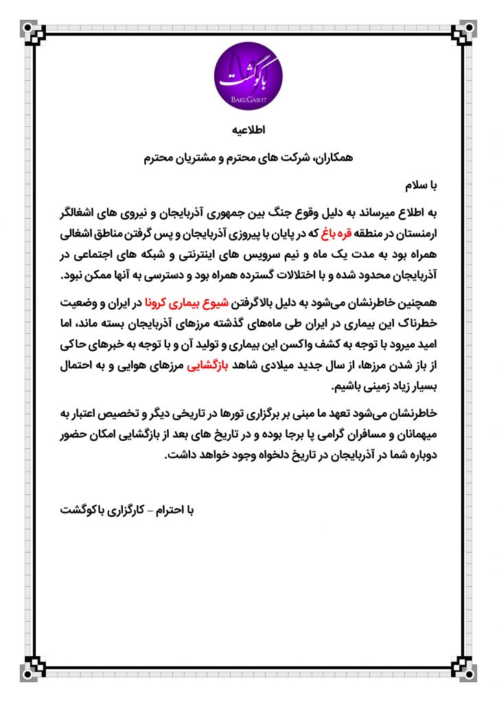 اطلاعیه بازشگایی مرزها و اتمام جنگ 22 آبان